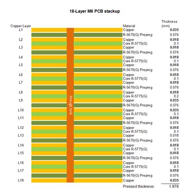 -HVLP設計:HVLP (Highly Volatile Low Profile) 機能は,揮発性のある成分を減らす層間結合の質を向上させ 18 層高密度PCB設計において重要な.